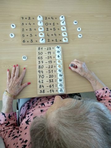 En los Talleres Terapéuticos de Cognitivo aprovechamos, por ejemplo, los tapones, para desarrollar una actividad de estimulación de la destreza manual fina y del cálculo.