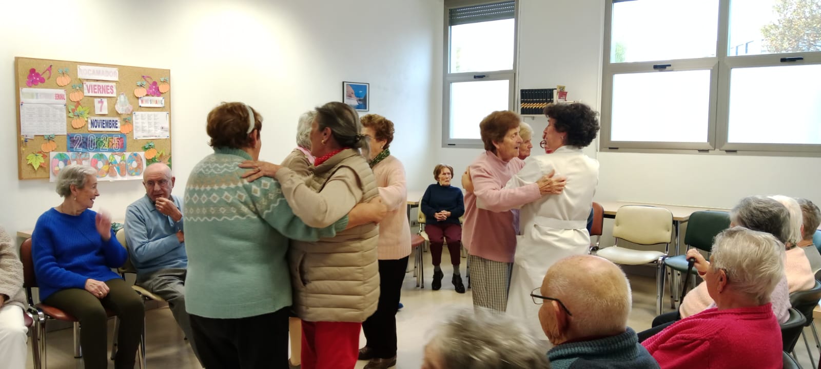 Esta tarde lluviosa, hemos disfrutado de música de baile de la época. Siempre buscando un momento de alegría y convivencia.