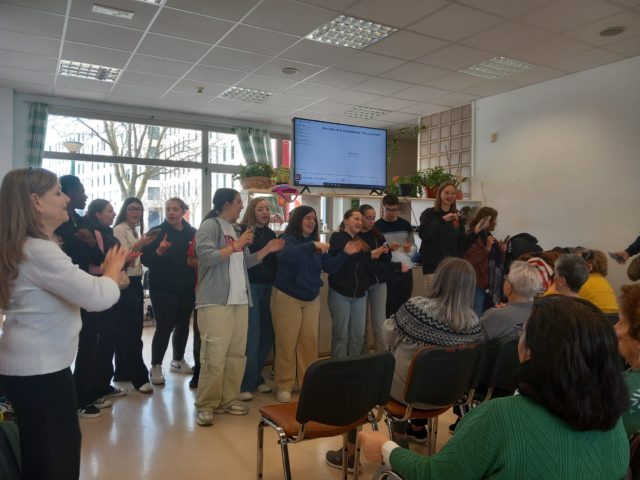 Las usuarias y usuarios del Centro Terapéutico de Día Rocamador hemos recibido una visita muy agradable. Se trata de un grupito de alumnas de 4º de Educación Infantil de la Universidad de Burgos, que acompañadas del profesor y sacerdote Jesús, se han interesado por nuestra vivencias pasadas y presentes. Por su parte nos han hecho partícipes de sus ilusiones y proyectos profesionales.